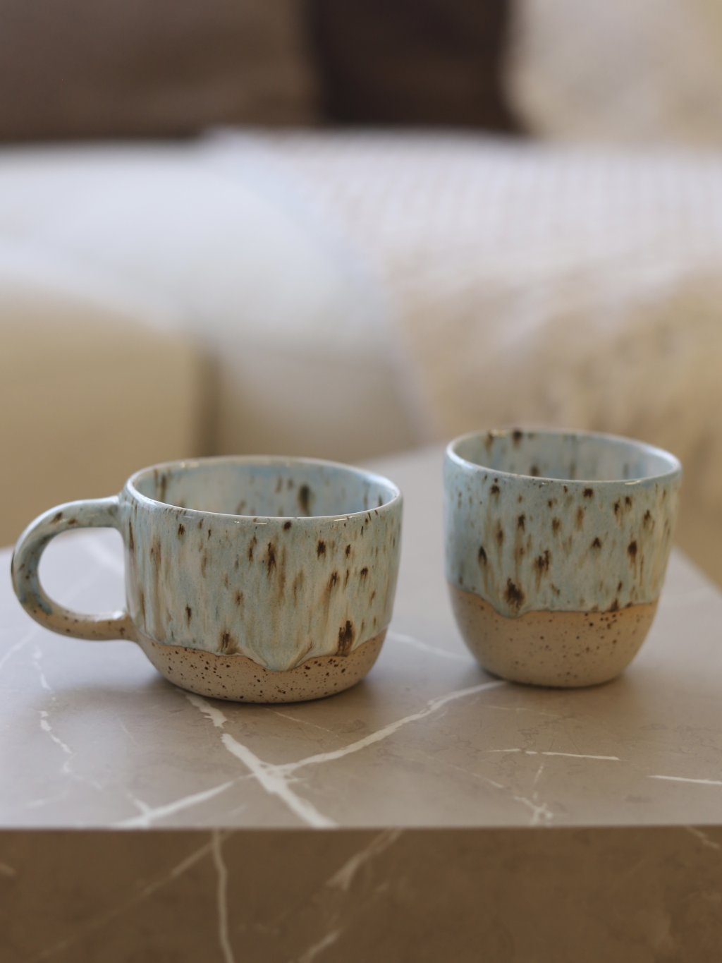 Hrnek vznikl roztočením hlíny na 250 otáček za sekundu. Tvar získal za asistence několika prstů a potom pár dní schnul, aby následně mohl být přežehnut v peci při teplotě 900°C. Nakonec dostal barvu a byl vypálen po druhé při teplotě 1200°C.