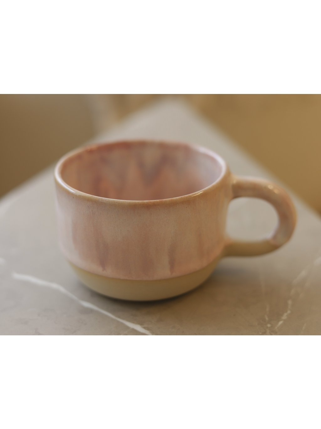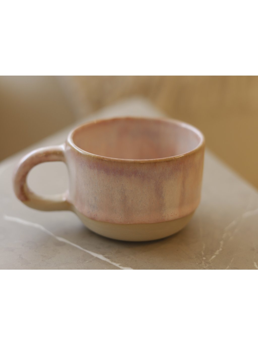 Hrnek vznikl roztočením hlíny na 250 otáček za sekundu. Tvar získal za asistence několika prstů a potom pár dní schnul, aby následně mohl být přežehnut v peci při teplotě 900°C. Nakonec dostal barvu a byl vypálen po druhé při teplotě 1200°C.