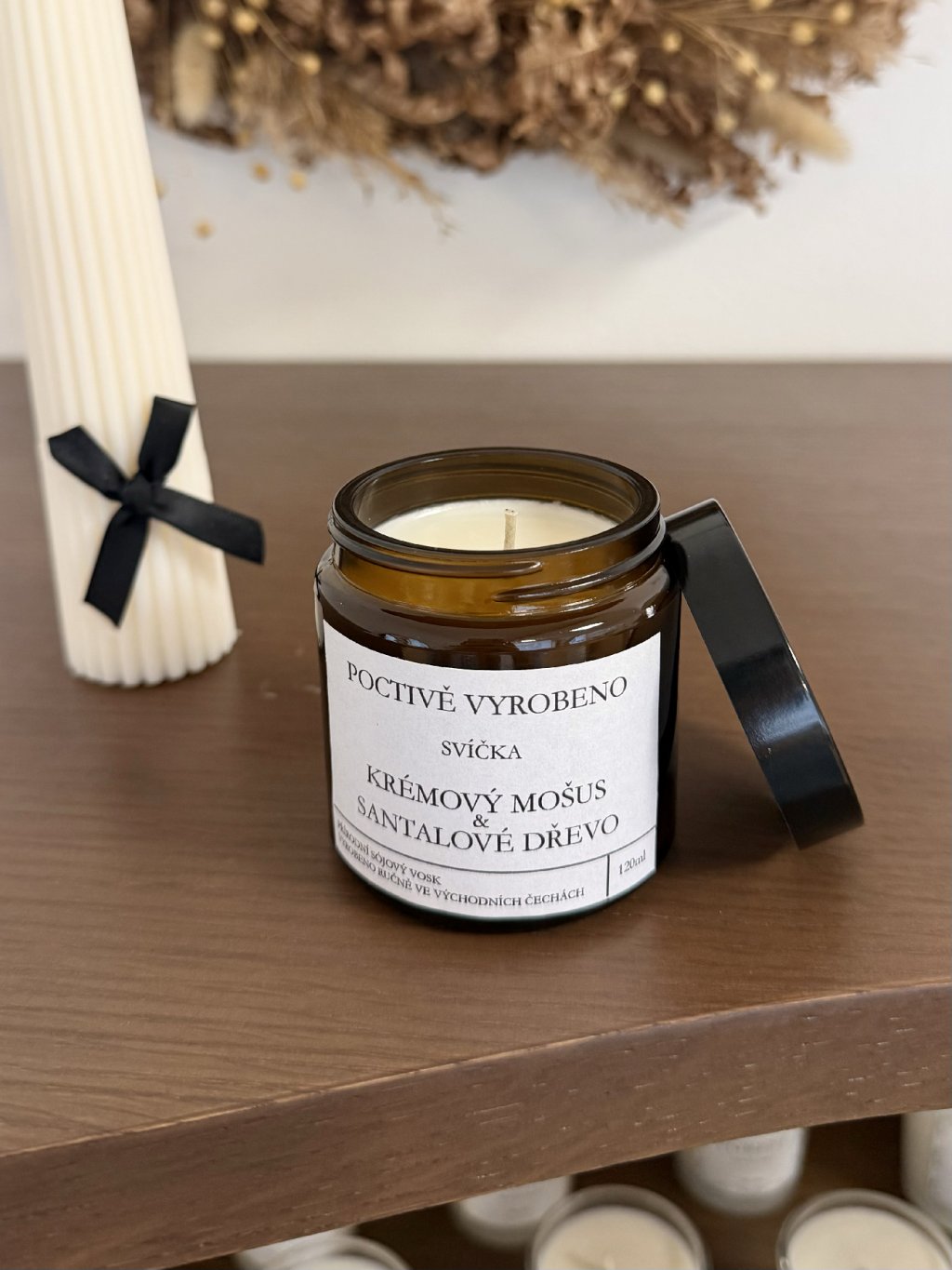 SÓJOVÁ SVÍČKA KRÉMOVÝ MOŠUS A SANTALOVÉ DŘEVO