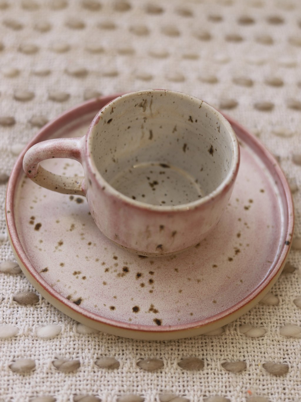 Talířek vznikl roztočením hlíny na 250 otáček za sekundu. Tvar získal za asistence několika prstů a potom pár dní schnul, aby následně mohl být přežehnut v peci při teplotě 900°C. Nakonec dostal barvu a byl vypálen po druhé při teplotě 1200°C.