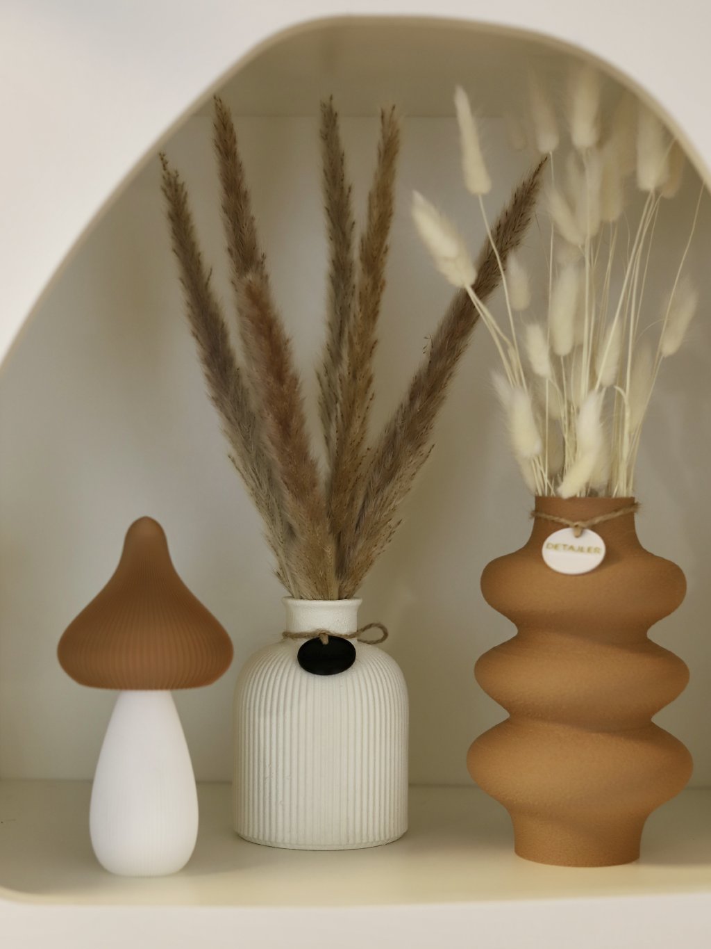 - Materiál PLA není voděodolný, proto nedoporučujeme nalévat dovnitř vodu. Pokud chcete aranžovat čerstvé květiny, vložte do vázy malou skleničku nebo zkumavku s vodou. Vázy jsou především určené na sušené nebo umělé květiny.
