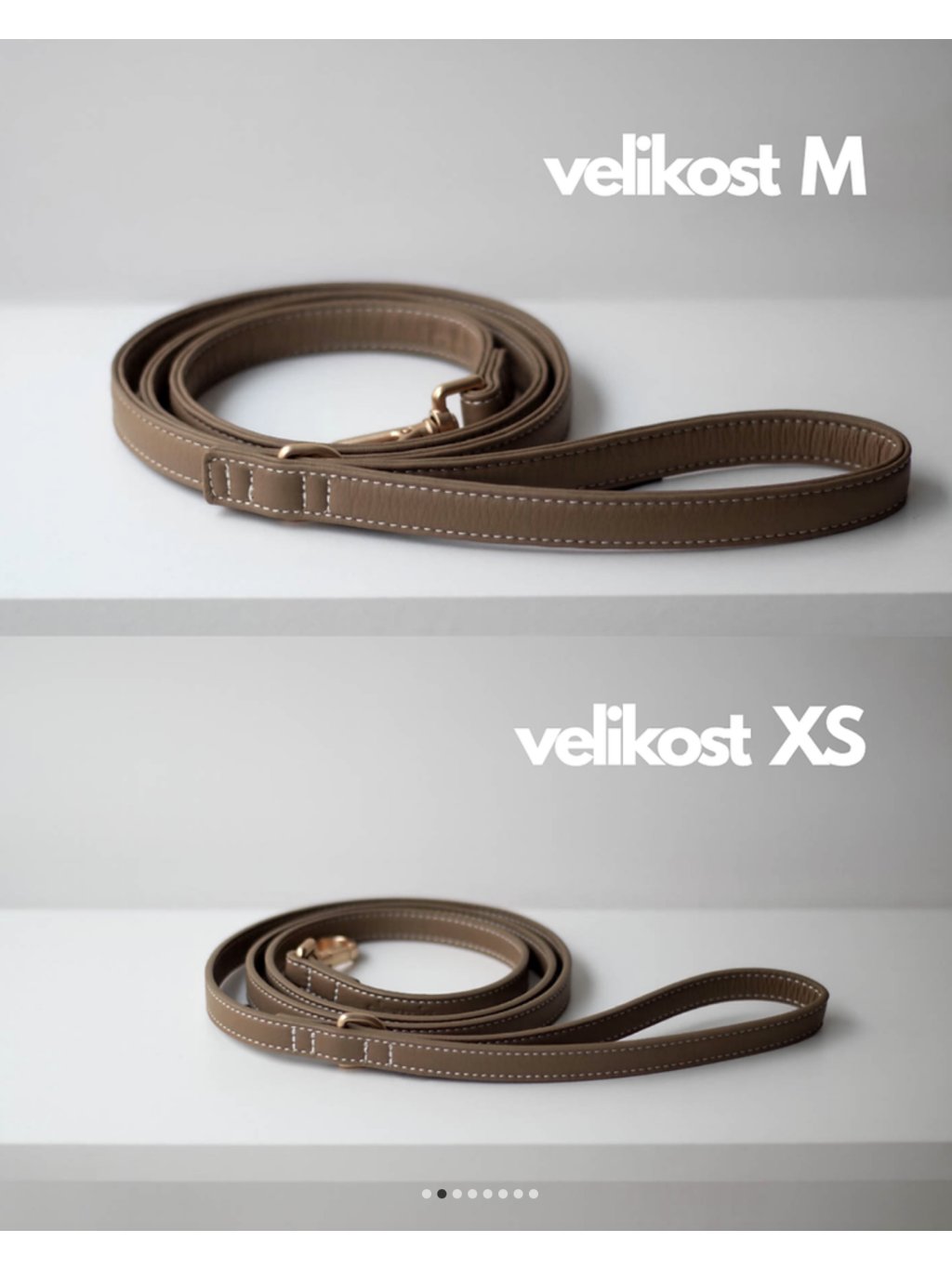 XS: délka vodítka: 150 cm, šířka: 1,4 cm, doporučené pro pejsky o hmotnosti 1,5-7 kg