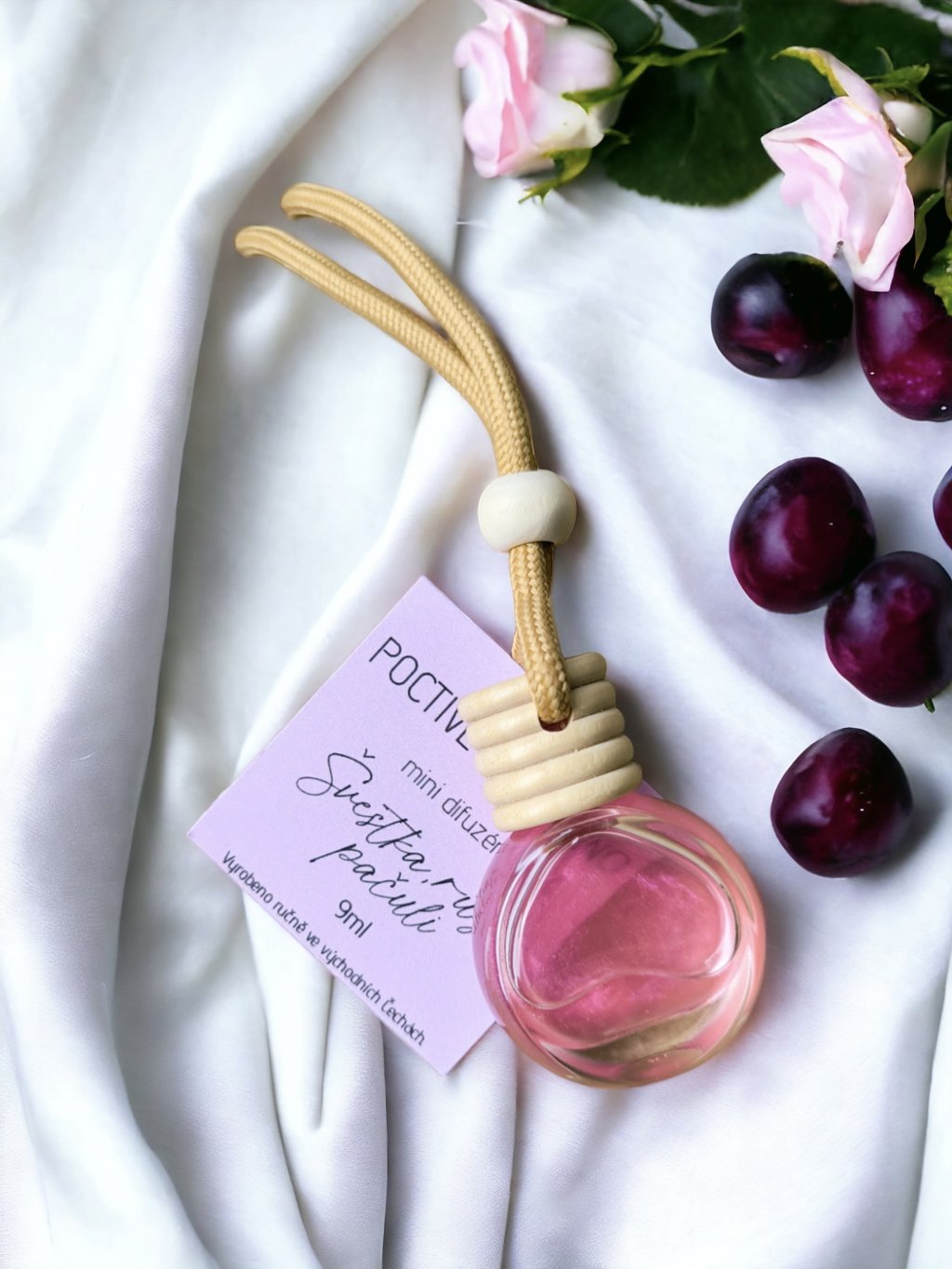 VŮNĚ DO AUTA ŠVESTKA, RŮŽE A PAČULI